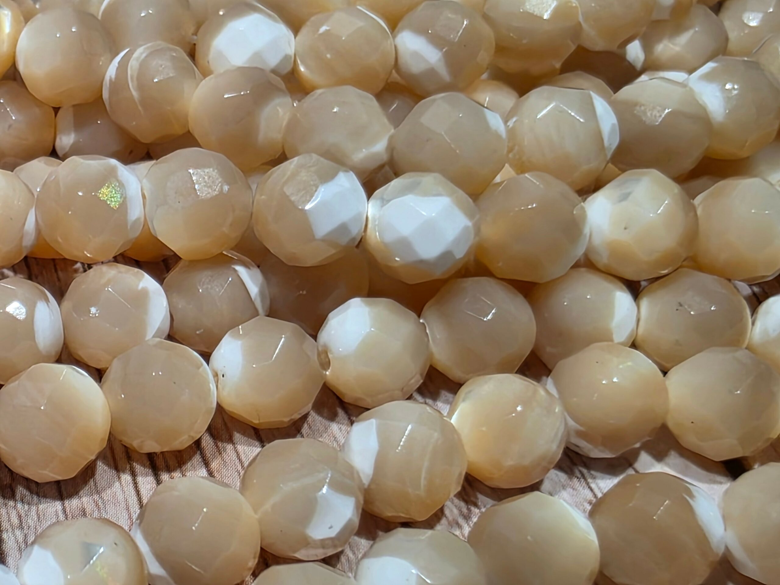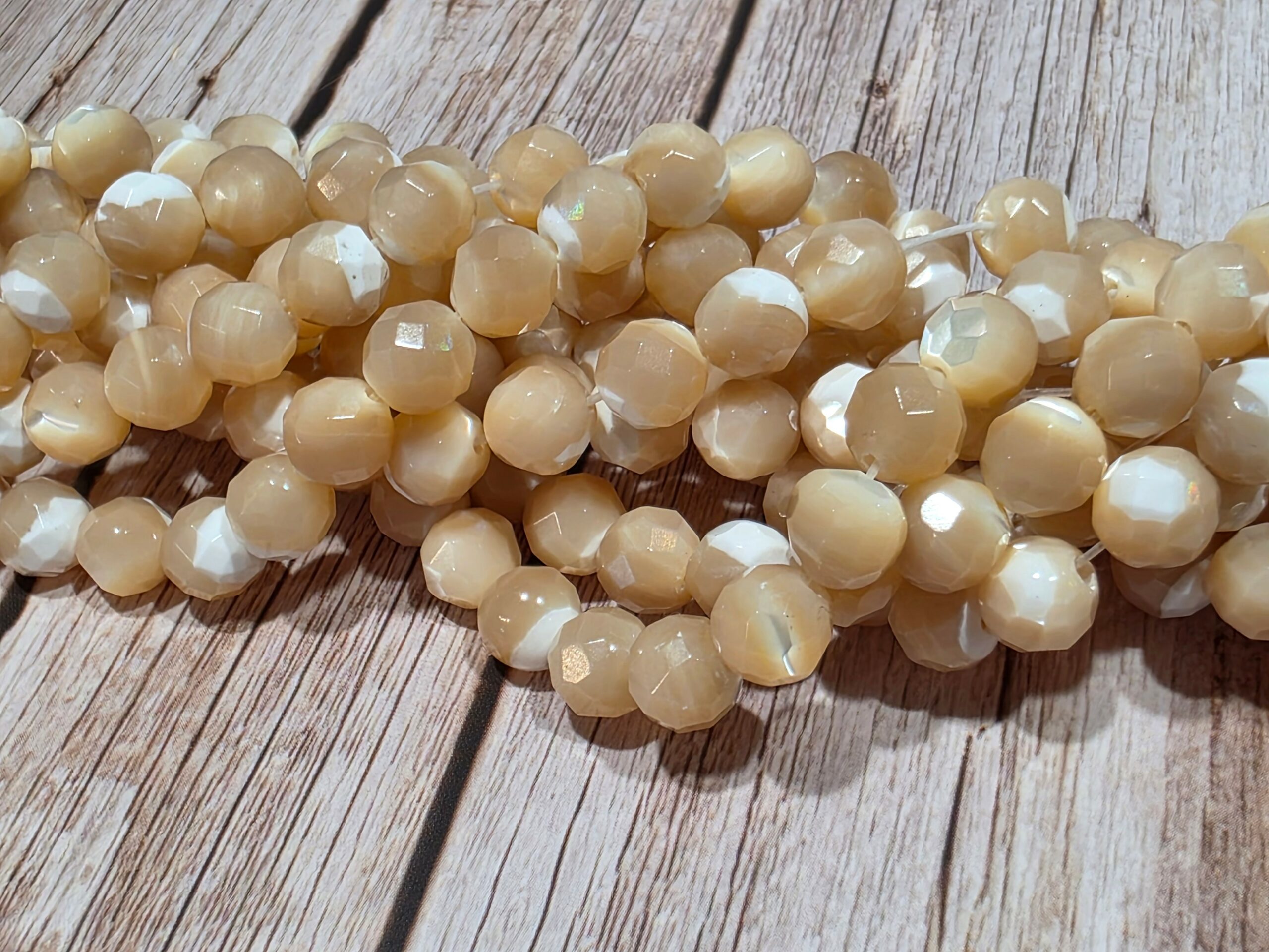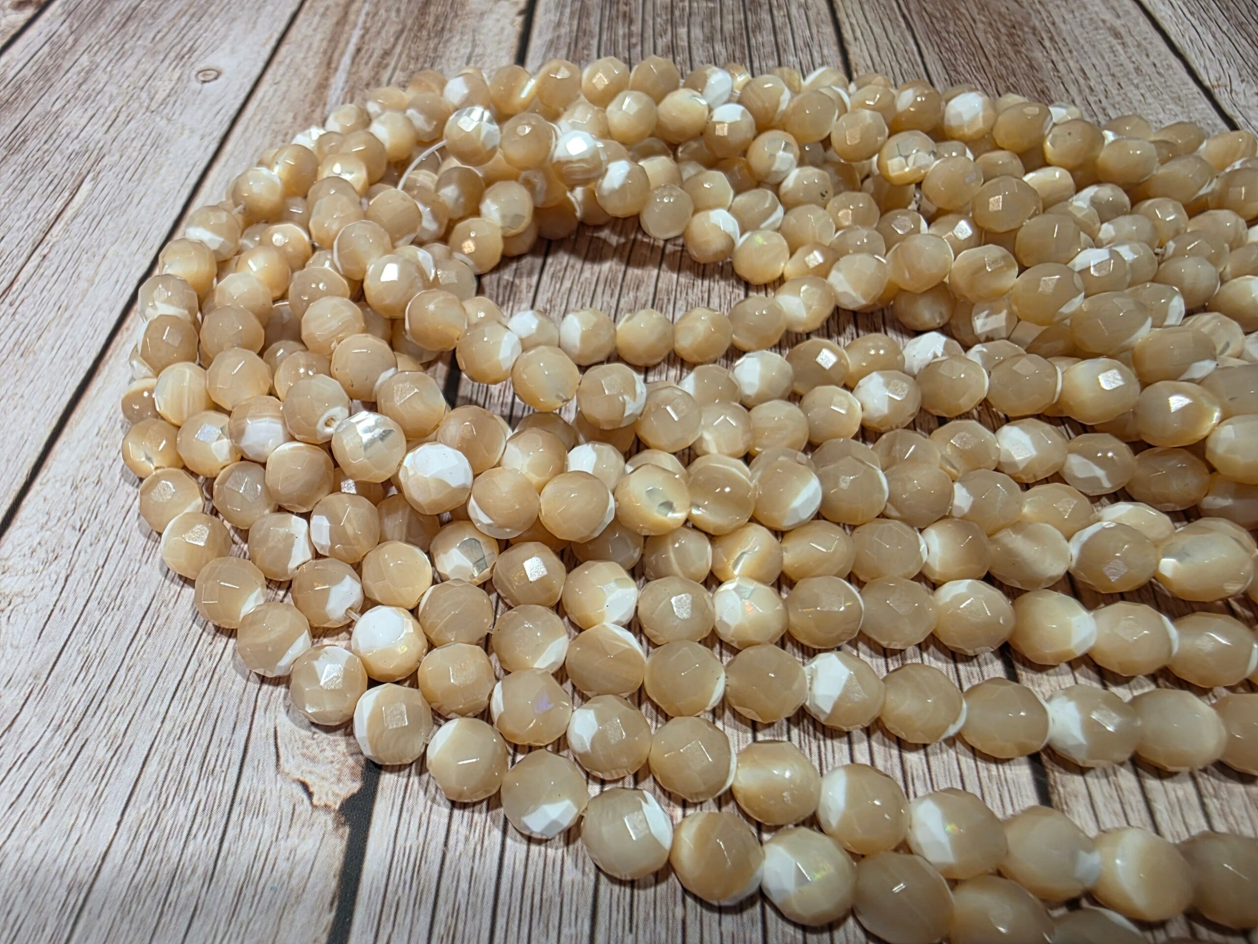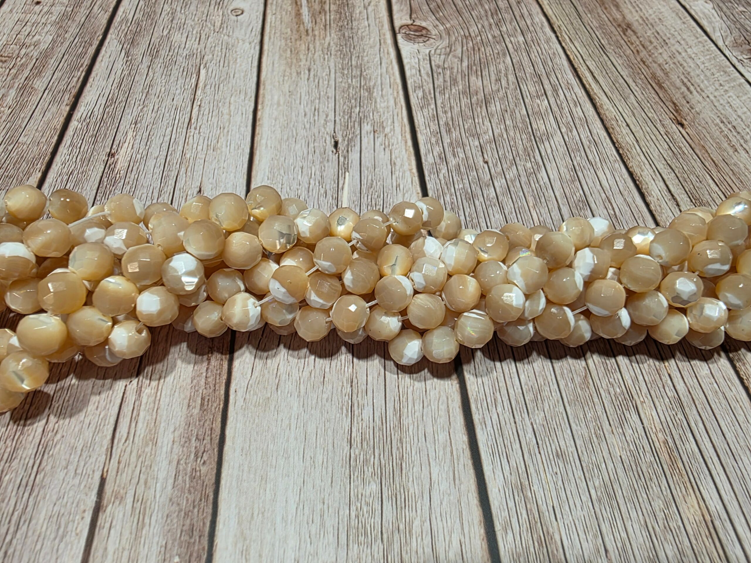 La taverne aux minéraux propose des perles de nacre brune facetté pour vos créations.