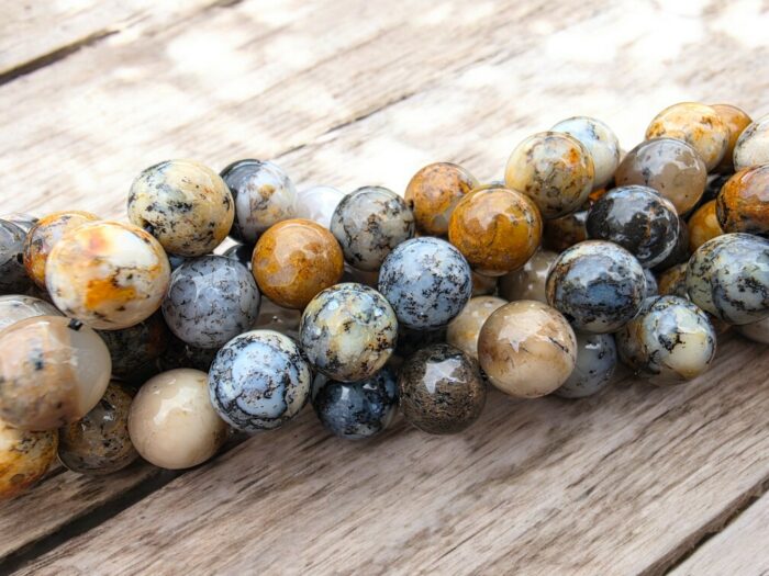 La taverne aux minéraux propose des perles d’opale brune dendrite pour vos créations.