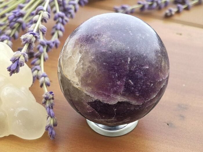 Étiquettes : lépidolite, lithothérapie, mica, naturelle, semi-présieuse, sphère